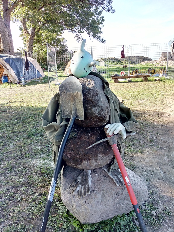 Что мы видим на заднем плане? Правильно! Отчетливо прослеживающиеся слои осадочных пород вперемешку с разнообразным мусором. Вокруг люди строили дома и возделывали огороды, а на торчащей скале картошку не посадишь - вот и остались наслоения от того самого потопа, над следами которого так любят шутить плохо информированные скептики!