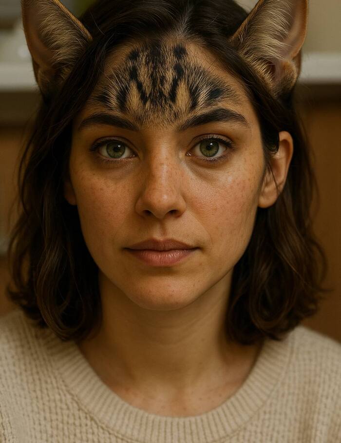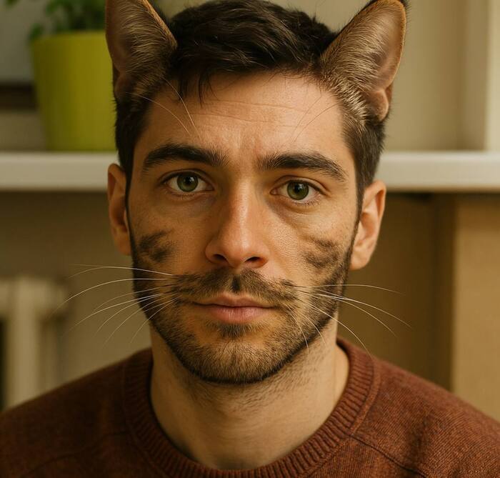 В городском новостном паблике в тг прикольный тред вчера был про то, как ИИ превращает портреты питомцев в портреты людей. В чате Яшу выложила. Девушка Настя через чат прогнала и получился портрет. Правда.... по мнению ИИ ,Яша- девочка!