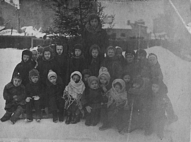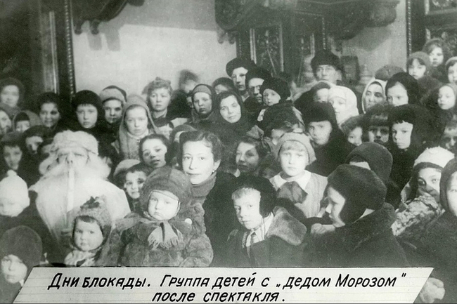 "1 января 1942 года нам, учащимся, дали пригласительные билеты на елку в Драматический театр им. Горького. Во время спектакля несколько раз объявляли тревогу, спектакль прерывался, мы все спускались в бомбоубежище. После спектакля были накрыты столы. Нам каждому дали по маленькой котлетке с гречневой кашей" (Т. Журина)