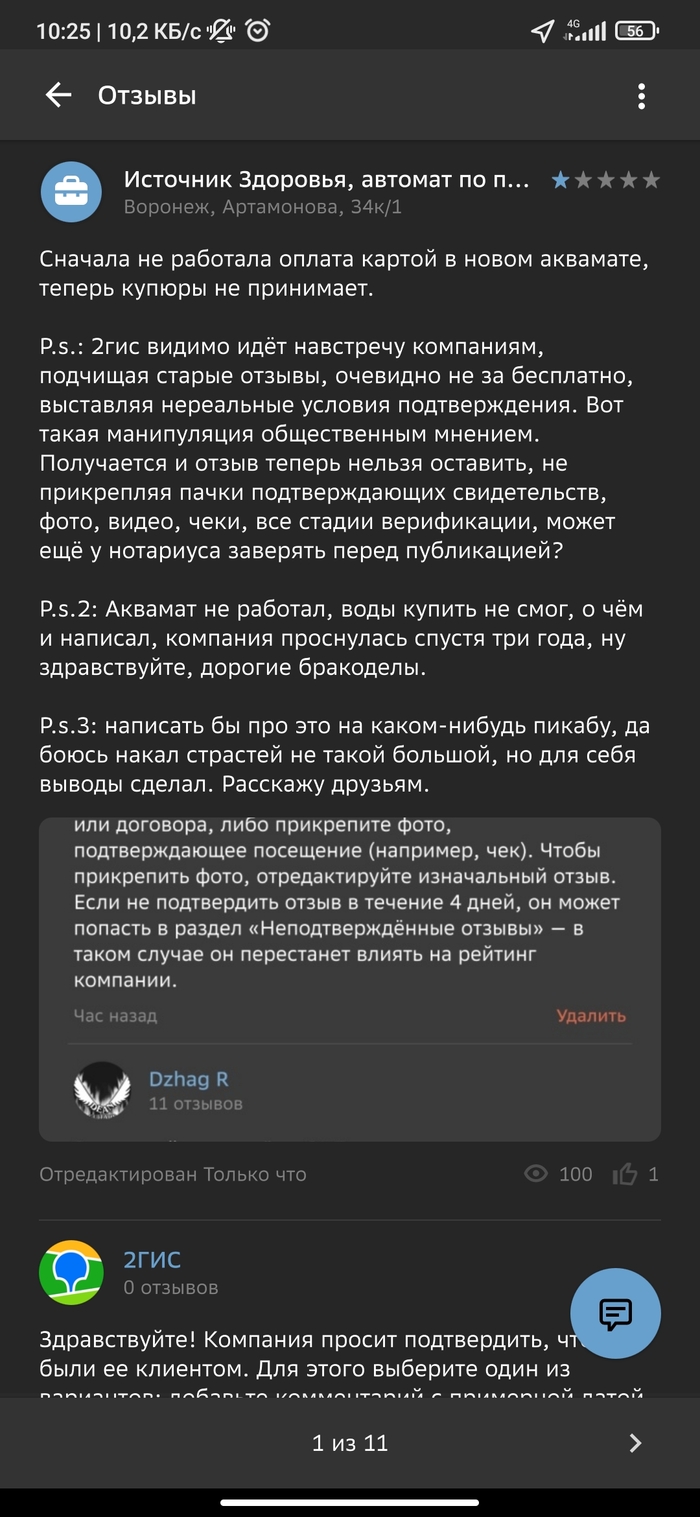 У меня тоже что-то пригорело от такой политики @2GIS, ладно боты крутят, можно понять, их легко распознать, но сама площадка. Они отрыли отзыв, которому три года почти, три, Карл. И выкатили свои условия верификации. Если это был не алгоритм, а живой человек, то это ещё печальнее, это либо очень хитрый сотрудник, либо не очень умный.