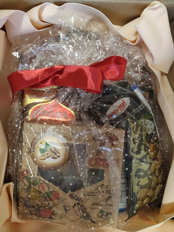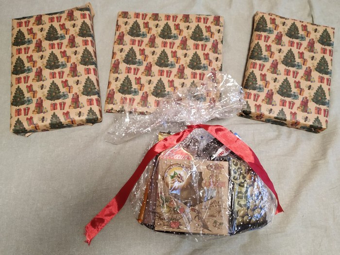 В анкете я написала, что люблю сладкое и сложно решить, что из сладкого я не люблю. "Окееей", - сказала Вселенная и послала мне Деда Мороза из Рогачёва (кто в теме, тот поймет). Посылка добиралась до меня неделю, что для маленькой страны довольно долго, похоже упиралась рогами :) Или это было мне наказание за то, что не сразу ответила Дедушке на его запрос (поделом мне, читать почту нужно регулярно). И вот, она у меня, моя прелесть! Ритуальное лежание под ёлкой.