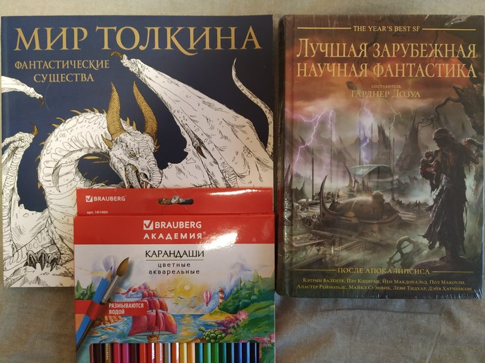 А в свёртках оказались книга Терри Пратчетта (мной точно не читанная) и наборы открыток для посткроссинга.
