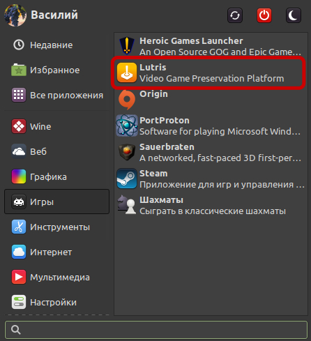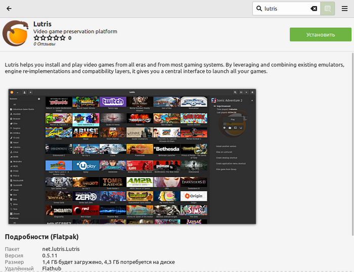 Самый простой способ установки игр и программ происходит через сайт Lutris.