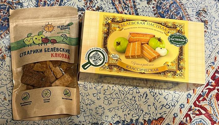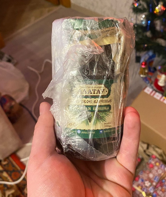 А вот еще вкусности, которых в наших местах тоже не наблюдали – Иван-чай со вкусами шиповника, земляники, черной смородины, мёд с клюквой и….варенье из сосновых шишек! Читая отчеты об обмене, увидев в подарках такое варенье, все мечтала попробовать.. Моя Снегурочка – волшебница и фея – откуда она это узнала??