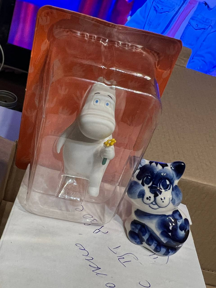 Шикарная шкатулка для рукоделия, а в ней…. Конфееееты. Много конфет!!!! И таких в наших краях еще не видели! А в ней спрятался Гжельский Кузя!!! Милый, прямо из детства Домовенок!!