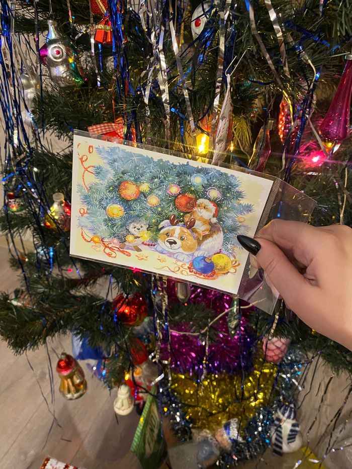 Волшебная открытка с теплыми пожеланиями – потрешь картинку – и сразу чувствуешь запах ароматной хвои. И магнитики!