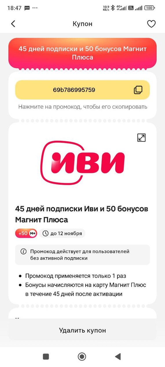 Активировать до 12 ноября. Получены в приложении магнит. Чуть позже еще будут. Не реферальные! Возможно при оформлении потребуется ввести данные карты для привязки. В нынешних реалиях это стандартная практика.