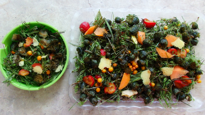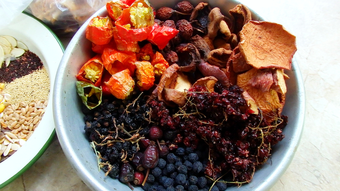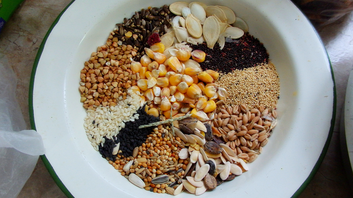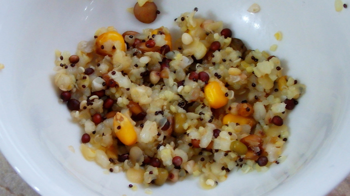Как вы знаете, каши я даю пару раз в неделю и не варю, а запариваю кипятком, так в них сохранятся больше полезных веществ, да и сами крупы по возможности беру наименее обработанные изначально. Вместо обычной гречки - зеленую, обычного риса - не шлифованный или дикий и т.п.