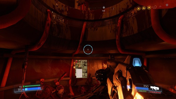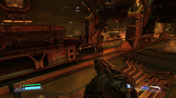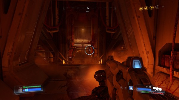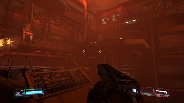 После того, как профессор пожалуется вам на нелегкую жизнь после уничтожения вами аргент-башни и когда спуститесь по служебному лифту вниз и зачистите первую арену от зла, обратите внимание на эту башню. Чуть правее и выше прицела есть платформа, на ней рычаг.