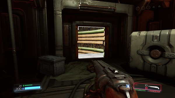 1: Странная дверь. Она выбивается из общего стиля уровня (без фанатизма, она в глаза не бросается)