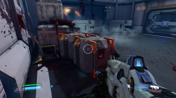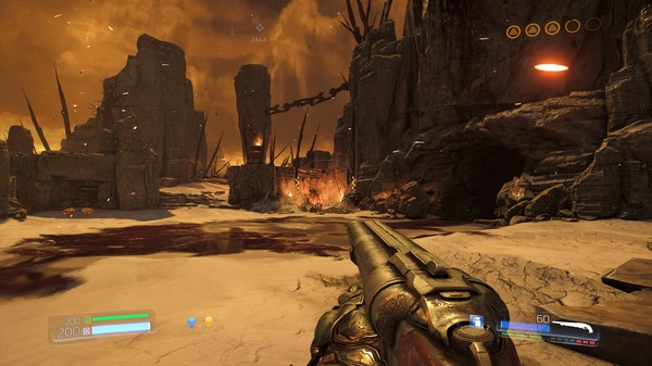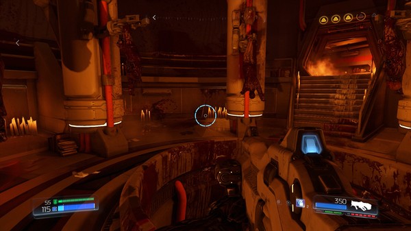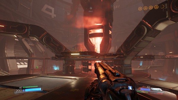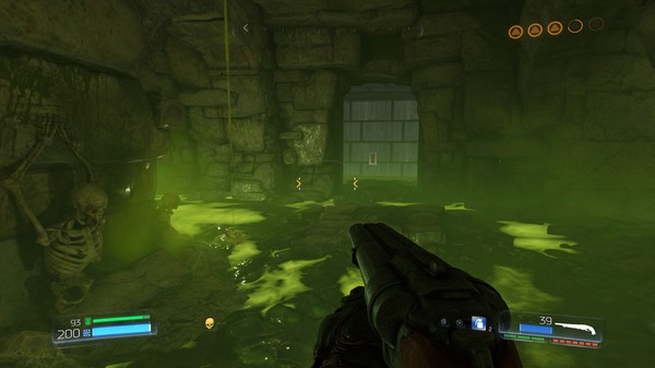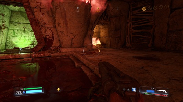 И вот последний уровень игры. Разработчики явно понимали насколько высока динамика уровня и поэтому здесь уровень по сути не спрятан. Самая первая арена. После того как отключили первый луч подключенный к порталу, справа от алтаря будет череп-ключ, активируем его и дверь справа от гигантского черепа будет открыта. Проходим туда. После поднятия на ступень, прямо перед нами рычаг, а справа сама дверь.