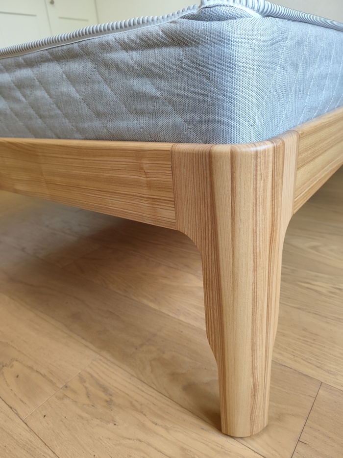 Толщина царг немного уменьшается вверх для придания большей изящности кровати и соответствия толщине ножки.