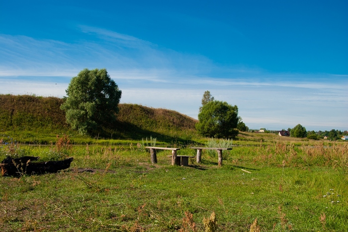 В общем, в один прекрасный день, согласовав время отпуска и одурев от рабочих будней, мы с мужем и друзьями решили уйти в конный поход. Приехали бледные и не особо любящие людей в место встречи, разобрали коней, были проинструктированы и запуганы заранее и верхами отправились на первый привал (вещи раньше уехали на машине - то немногое из удобств, кроме еды, что у нас было). Три часа в седле - и на фоне отличных видов мы разбили лагерь и смогли отужинать. Нет, сначала накормили и обиходили коней, напоили, запустили пастись и собрали "пастуха" (это такая мобильная ограда, чтобы кто чужой конягу не угнал). После этого можно палатки собрать, умыться и покушать.