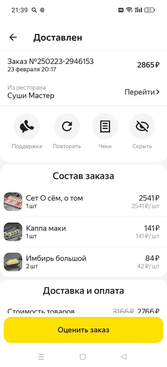 Отмечу, что к самому ресторану претензий нет. Мы попытались связаться и с ними, в надежде на их помощь. С их слов они готовы были бы и пойти навстречу, но из-за прослойки в виде Яндекса между нами, сделать этого не могут. Принимаем как есть, в конце-концов, они тут не при чём.