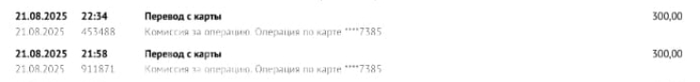 Но при этом со счета банка списаний на 30000₽ не было только два списания комиссии по 300₽