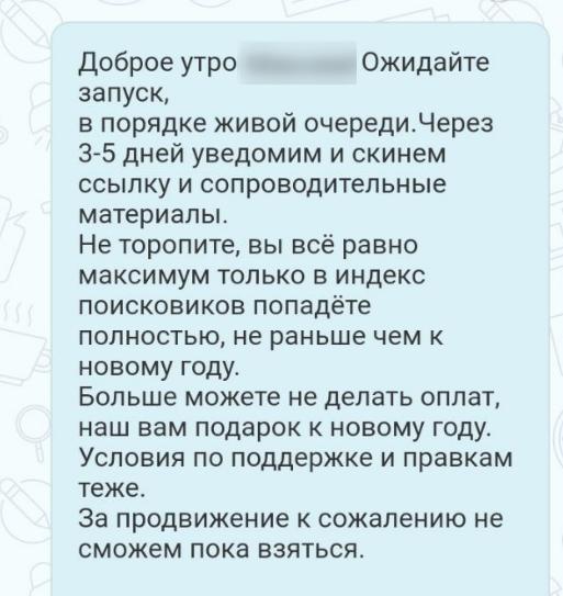 Сергей пообещал выполнить работу за 7 дней. После перевода предоплаты начались отговорки: "заболел", "срочные дела", "почти готово, осталось немного". В итоге прошло два месяца, но я так и не получил ни результата, ни возврата денег. А недавно Сергей удалил все переписки и заблокировал меня в мессенджерах.
