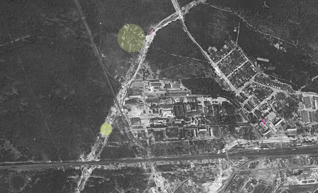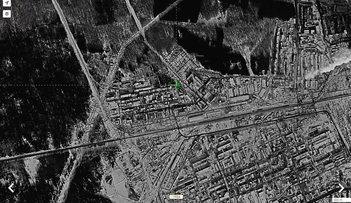 По данным немецкой аэрофотосьёмки 1943 года вся территория фотожелатинового завода помечена под литерой F1 (правый верхний угол).