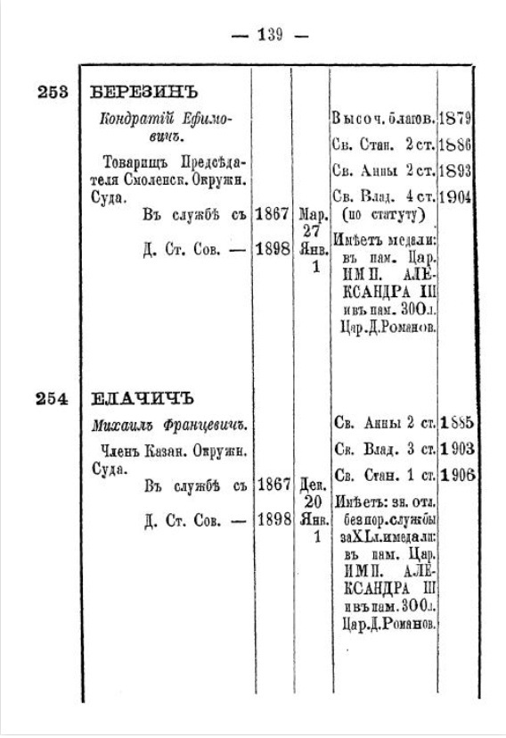 В 1896 году уже статский советник и сотрудник первого уголовного отделения.