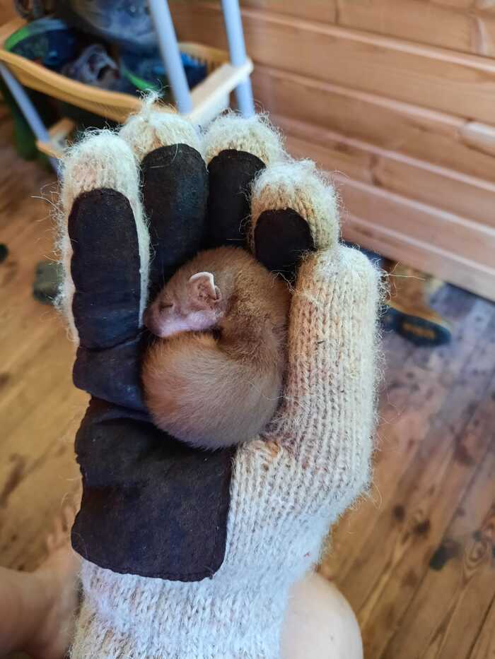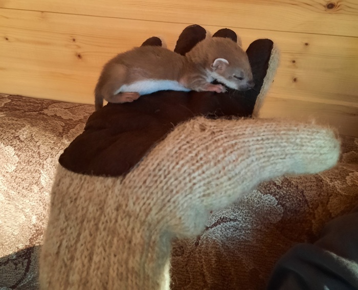 Уже пару недель обитаем с детьми на даче в Ленобласти: тут свежо и скучно, а одна из немногих развлекух-прогулка к железной дороге, что мы вчера и делали, даже невзирая на то, что двойняхам стукнуло три, и надо было бы сидеть и неистово праздновать. Хотела я уже повернуть к дому, но парни настояли пройтись до шлагбаума около жд станции. Не дойдя метров 100 до цели, обнаружили на дороге полуживого трясущегося зверька. Ввиду того, что в нашей семье было три хорька, я смогла понять, что это товарищ из куньих, и, оглядевшись по сторонам и немного подождав, решила его забрать с собой, не дожидаясь собак или машин.