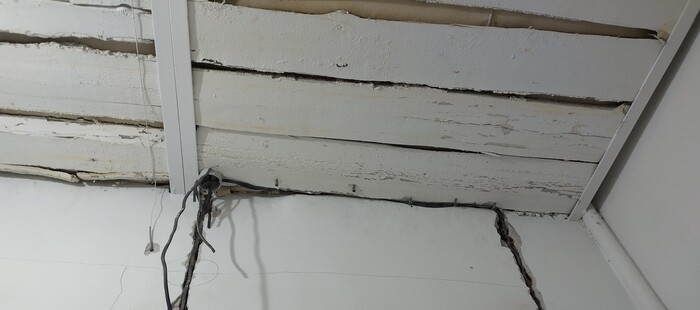 Товарищи ремонтёры, подскажите правильно ли проложена проводка? Прикрученная коробка к деревянному потолку и засунутые силовые кабели между стеной и доской как-то немного смущают. Помещение офисное, как бы кто атата не сделал.