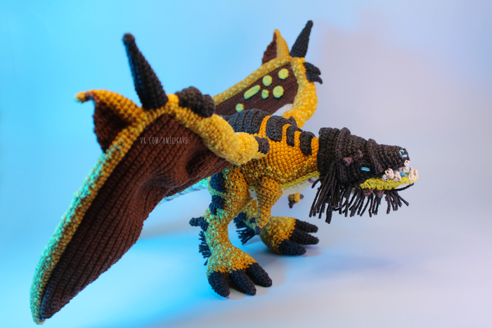Я думала такое можно сделать только из пластики или глины, в конце концов распечатать на 3д принтере, но я смогла поломать эти шаблоны и на свет появился такой яркий и грозный вязанный Протодракон:3
