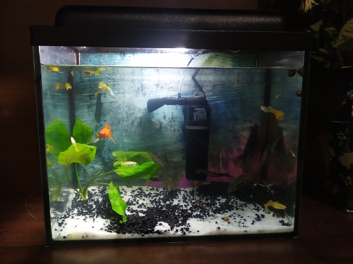 Дело такое, есть аквариум на 20-25 литров. Знаю, что это маленький аквариум, нано, и что такое не для новичка. Так вот какой грунт использовать и сколько можно и кого посадить в него . Так как я новичок, то точно хочу санитаров(сомик, улитка, креветка )