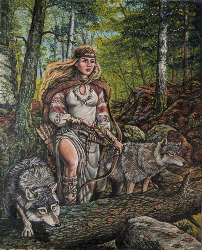 Своенравную Богиню Девану выдали замуж за Святобора, Бога Заповедных Лесов и Рощ. Спокойный и рассудительный Святобор немного смягчает характер Деваны, помогает ей не совершать безрассудных поступков, но так было не всегда. Славянские мифы рассказывают о том, как Девана, Богиня Охоты, пыталась победить отца Перуна и деда Сварога.