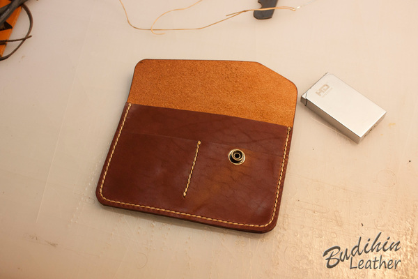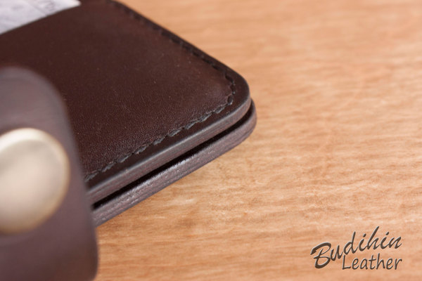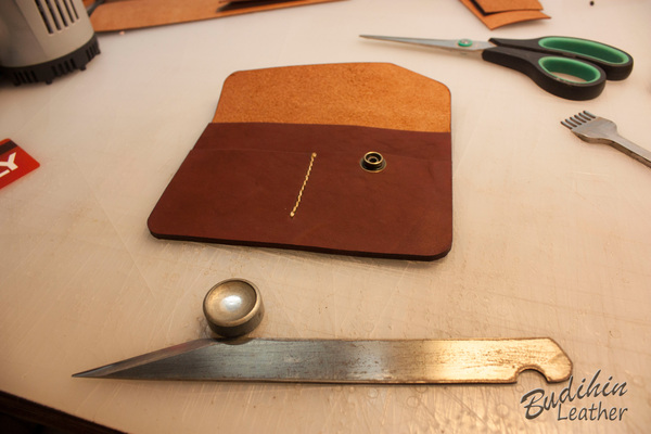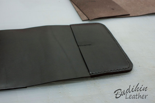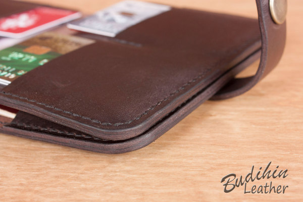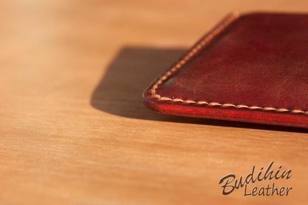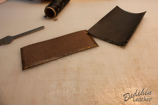 Перед прошивкой я загрубляю торцы и шлифую их, технология описана не раз в предыдущих постах, так что повторять ее, смысла нет. Ну и как финальный шаг это прошивка изделия, плетеной ниткой 0.8 мм, изначальное вощение у нее отсутствует от слова совсем, так что перед прошивкой протаскиваю ее по кусочку обычного пчелиного воска. После прошивки натираю изделие воском и дав постоять минут 10-15 полирую вручную обычным куском белой материи. Что бы придать защиту от влаги. После полировки кожа заметно темнеет, но через пару суток она станет примерно такого же цвета как и была раньше, ну может на пару тонов темнее.