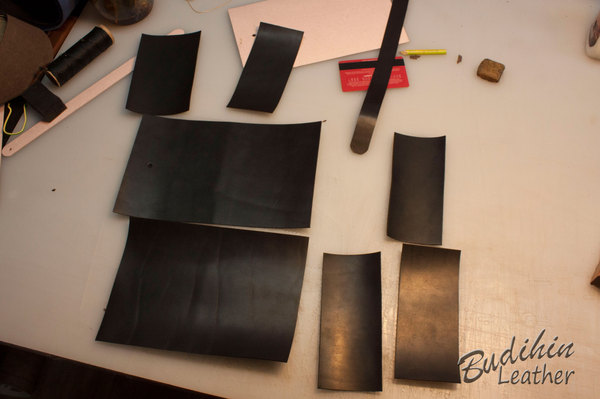 Для его создания понадобится: небольшой кусок кожи (в моем случае это чепрак 1.8 мм), нож, линейка, пробоники, нить плетеная, воск для финиша.
