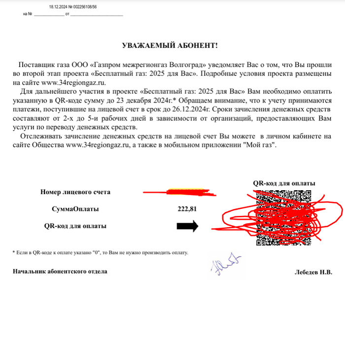 Сижу дома, не кого не трогаю, а тут бац и электронное письмо счастье на почту от Газпрома, точнее дочки компании ООО Газпром межрегионгаз Волгоград.