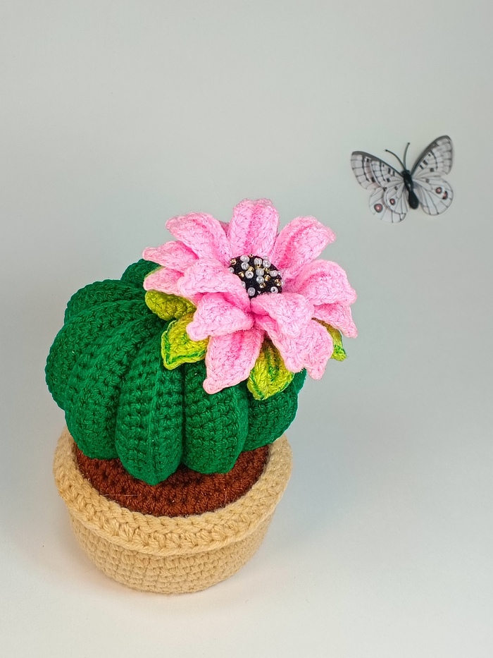 Игрушка выполнена в технике амигуруми. Вся фигурка связана цельно, без крупных сшитых частей; отдельные элементы (например, уши или детали мордочки) пришиваются к основному полотну.