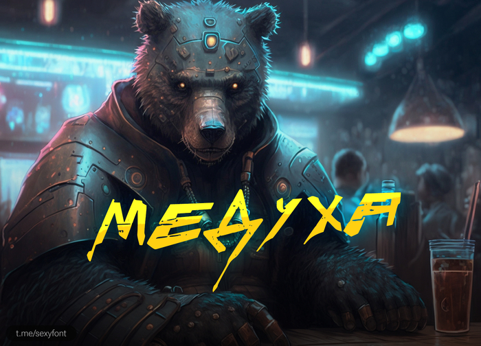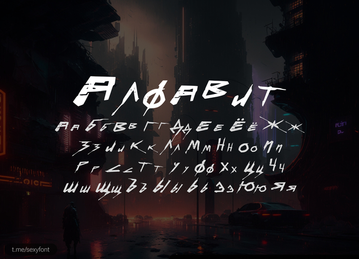 Шрифт Киберпанк. Хайп почти прошел, а шрифт остался) Использовать максимум в 1 коротком слове. Иначе читаемость сразу теряется. Определенно только декоративные цели, а не информативные. Меня все равно обматерят за нечитаемость. Но опубликовать не имею права ) Автор кириллизации: FONTS BY LYAJKA