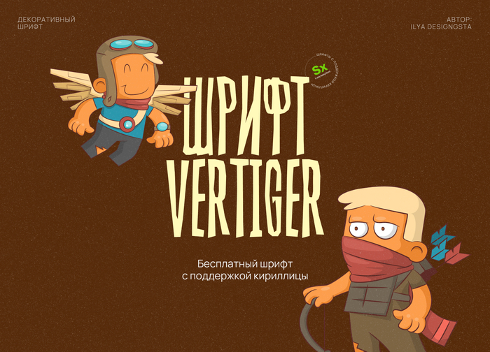 Vertiger. Это сжатый, грубый и ритмично повторяющийся шрифт, который передаёт загадочное очарование мистических кинопостеров 1950-х и 1960-х годов.Автор: Ilya Designgsta