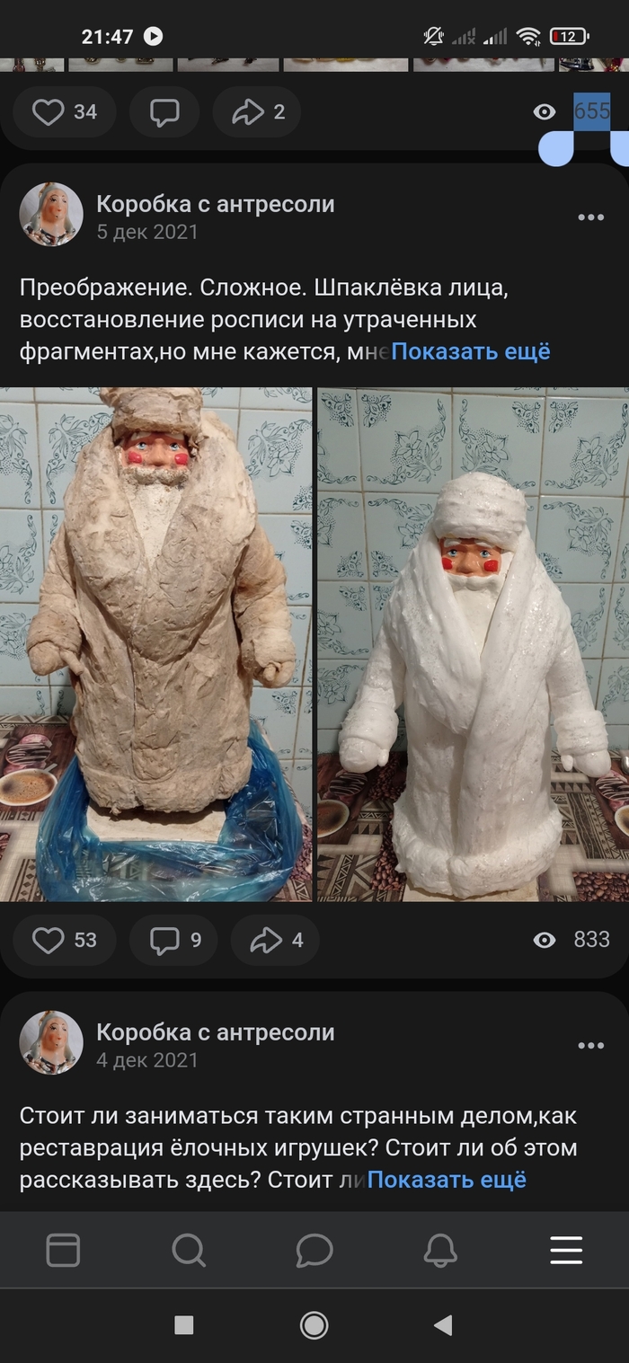 Почти год я продержалась здесь,но бывших наркоманов не бывает как говорится, поэтому я снова стала тянуть в дом игрушки... И чтоб как то минимизировать материальные потери, стала и здесь заниматься реставрацией. И самое удивительное, снова идут ватные деды морозы,которых я никогда всерьез не рассматривала,но которые чаще всего попадаются мне в руки
