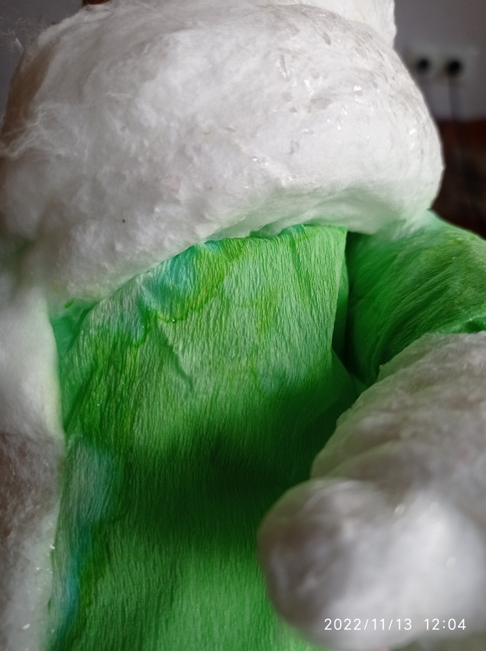 Густота клейстера сказывается на фактуре поверхности: чем более густой клейстер, тем поверхность более ,,хрустящая,, и воздушная. Жидкий лучше пропитывает вату и делает слой более твердым и менее объемным.
