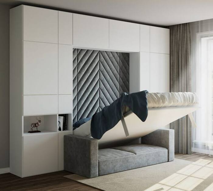 Главный минус этого варианта – дороговизна. Плюс – вы получаете полноценную кровать ночью, днем свободное пространство.