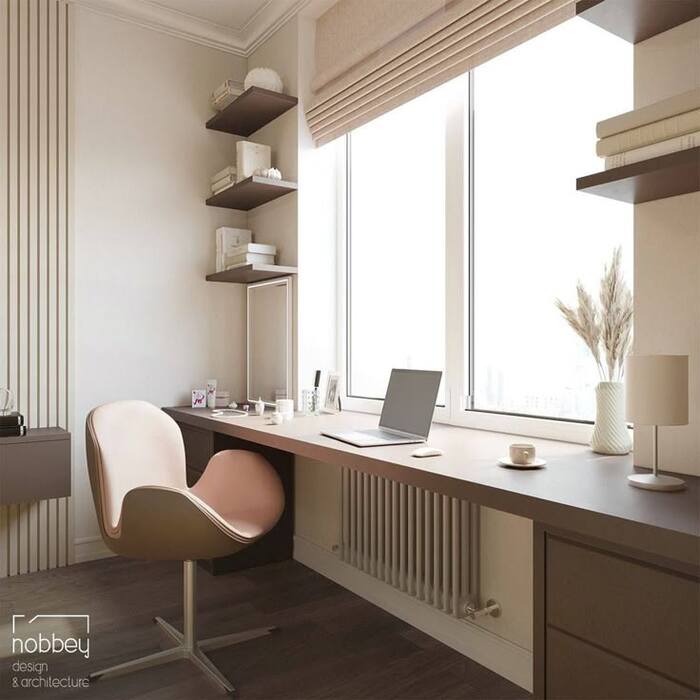 Можно разместить хранение, рабочий стол, зону отдыха, гладильную зону или гардероб.