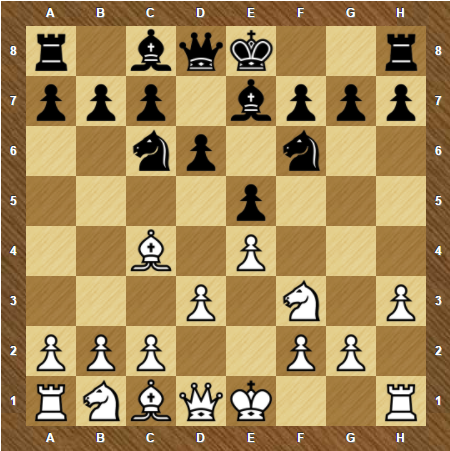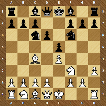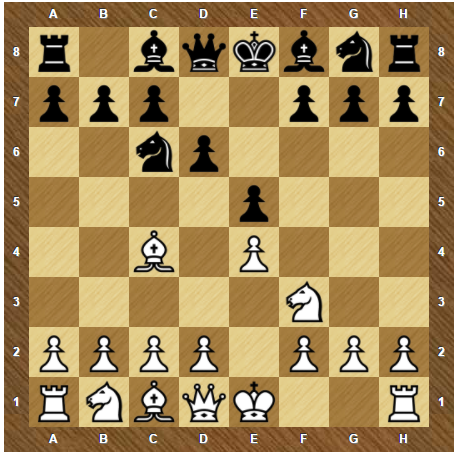 5. Защита пешки, с освобождением поля для слона d2-d3 и вывод слона, для короткой рокировки Сf8-e7,