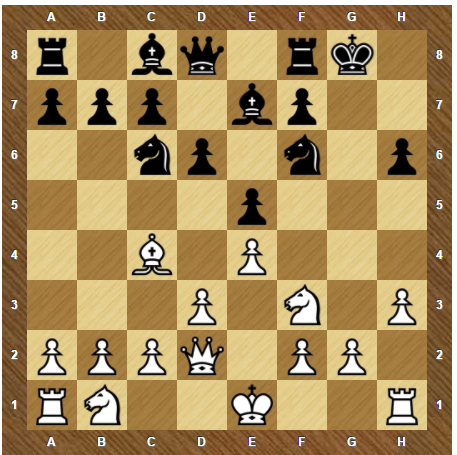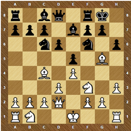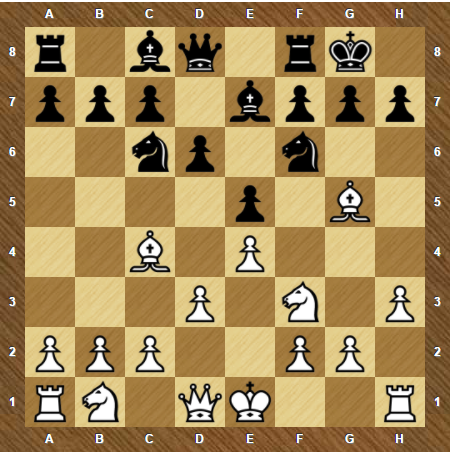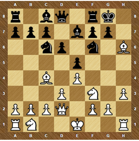 6. Слон выходит вперёд c1-g5, чёрные делают плановую рокировку O-O
