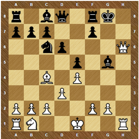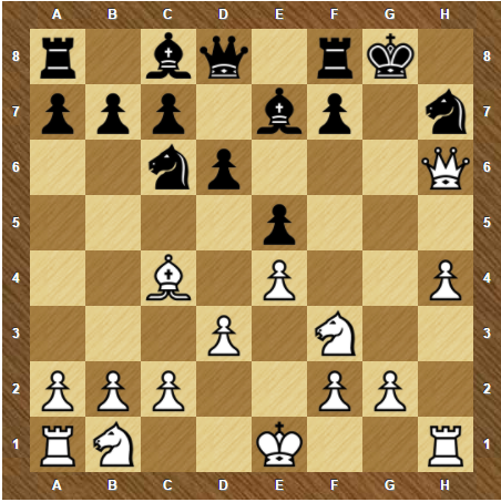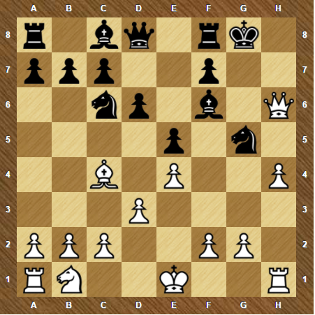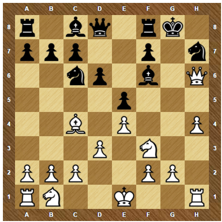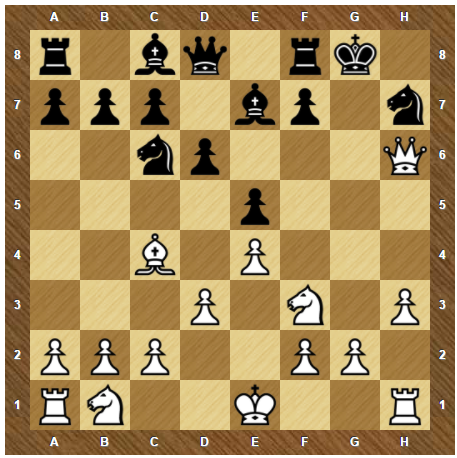 Обычная игра, разве что, чёрные несколько пассивны. Ну, а дальше белые применяют смелую, но типовую для новичков жертву слона на h6, что требует от чёрных точной защиты.
