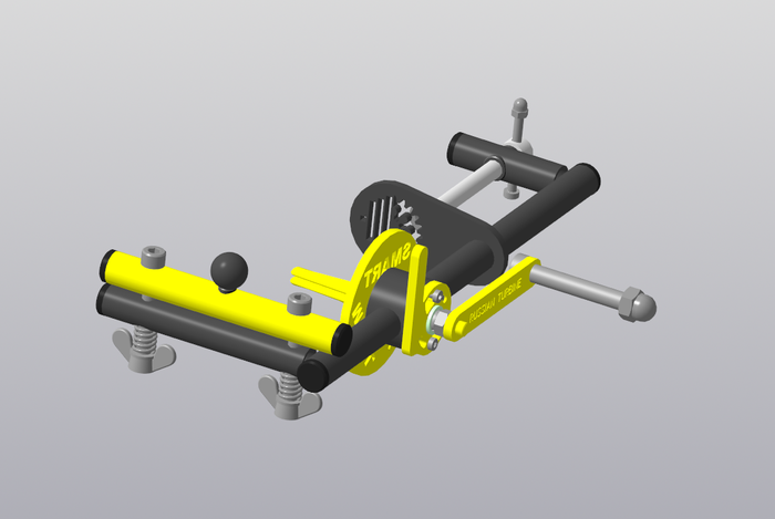Пред натяг бинта создают две пружины спереди между двух труб, причём натяг можно регулировать с помощью барашком снизу.