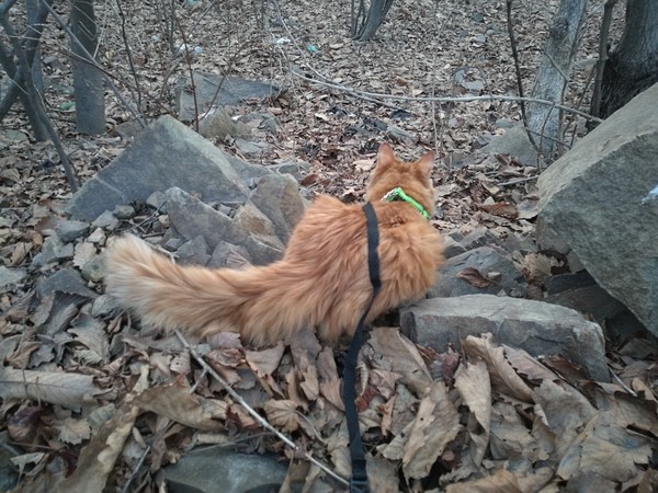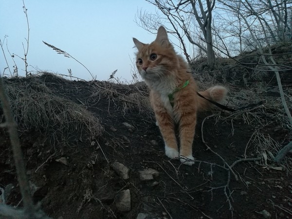 Периодически выгуливаем кота возле дома в парке. Также устраиваем мини-походы на 3-4 часа в лес на окраине города. Пару раз нас даже ловили зоозащитники с требованиями не оставлять кота в лесу)))