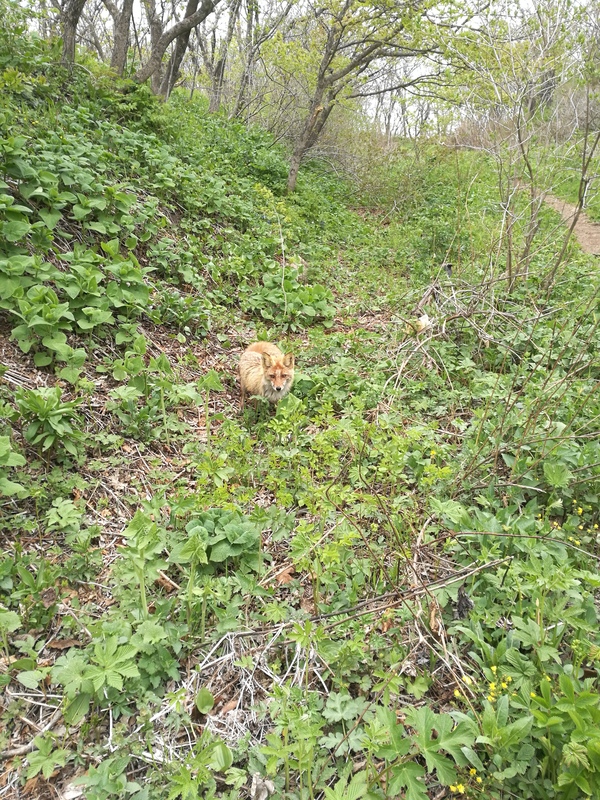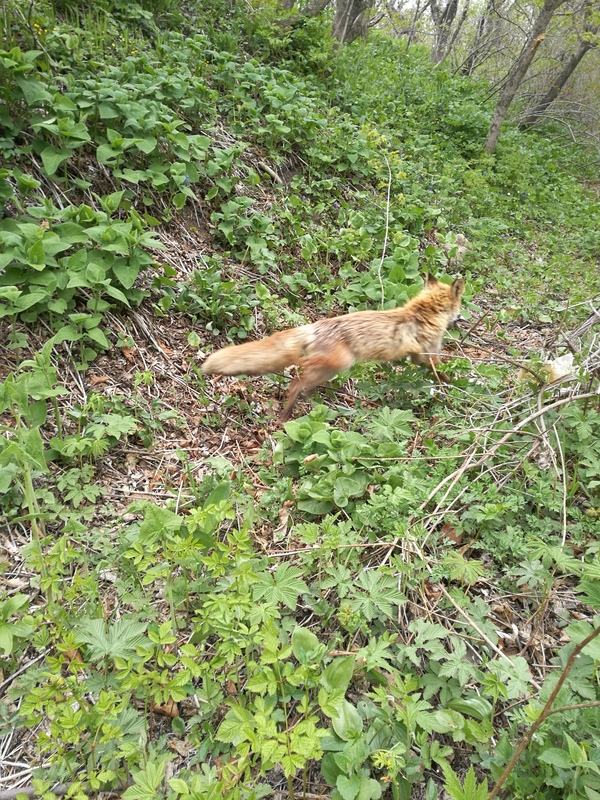 Всё изменилось после того, как он увидел лису! Мы перед подъёмом на форт оставили тяжелый рюкзак у дерева, а когда вернулись то увидели, что он разодран. Лиса учуяла еду, разгрызла рюкзак и съела почти всю еду, которую мы приготовили для кота. Естественно, он был абсолютно не рад такому)) Мы её ещё чуток прикормили и пошли дальше. Некоторое время она следовала за нами, потом пошла своей дорогой.
