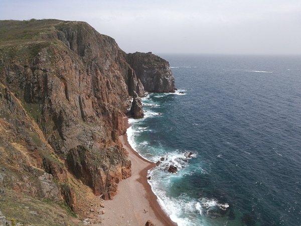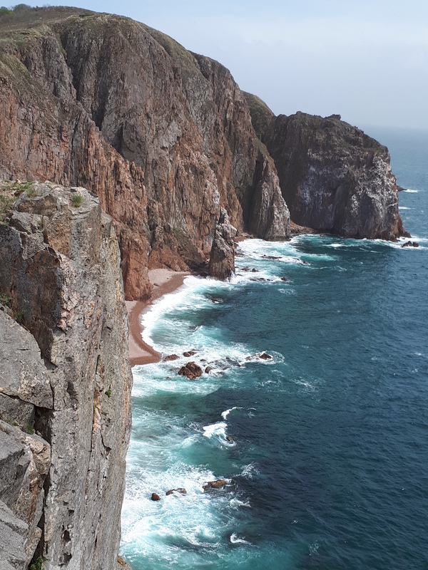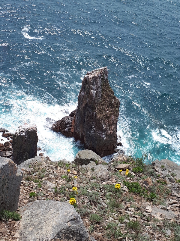 Отличное место, шикарные скалы, очень много птиц, все цветёт и кругом море! На него можно попасть через насыпную дамбу. Сейчас там по колено ледяной воды, но нас не испугало это и мы некоторое расстояние шли босиком.