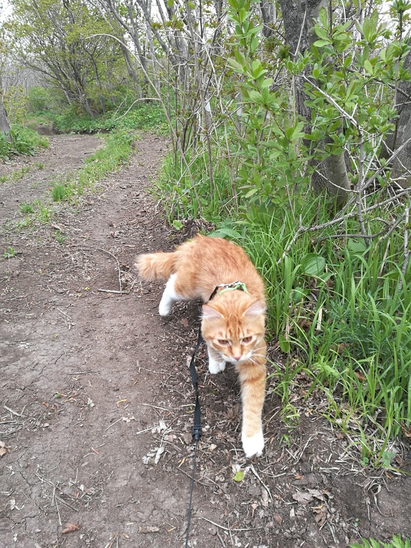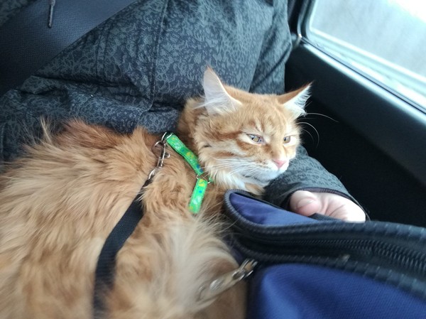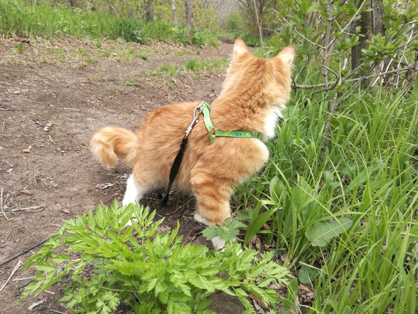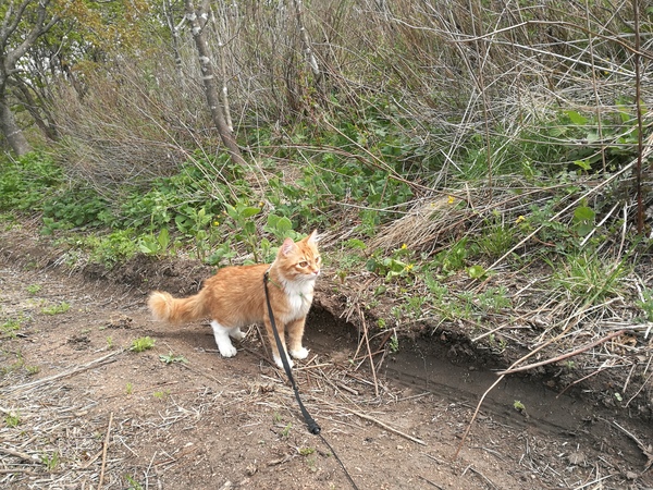 Что интересно - в этот раз кот по возвращении домой ведёт себя так, будто ничего не изменилось. Пару недель назал ездили в частный дом к бабушке, после поездки он отсыпался пару дней. В эту прогулку будто и не произошло ничего, хоть и гуляли мы с раннего утра до вечера. С каждой прогулкой он все уверенней и уверенней.