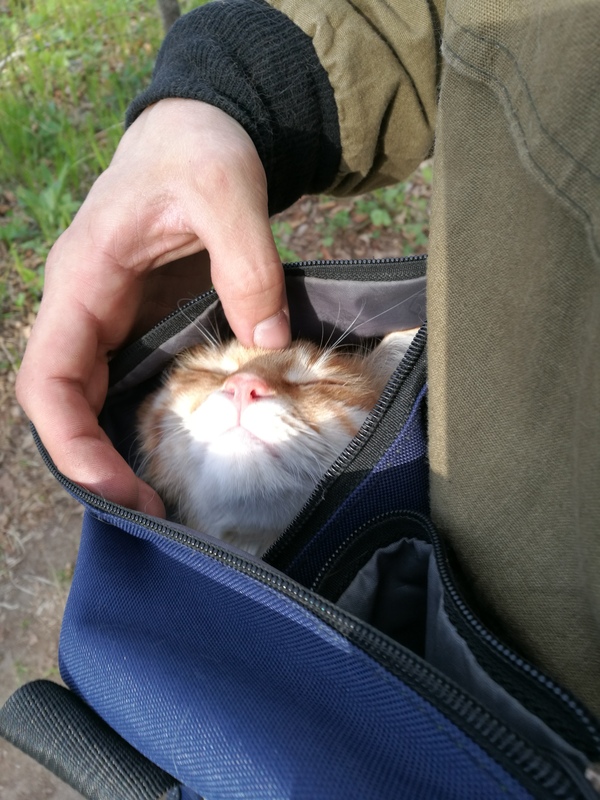 В этот раз кот гулял сам по себе, без шлейки. Он не шел за нами, мы отпустили его только после того, как разбили лагерь, и он не уходил ни разу за пределы видимости.
