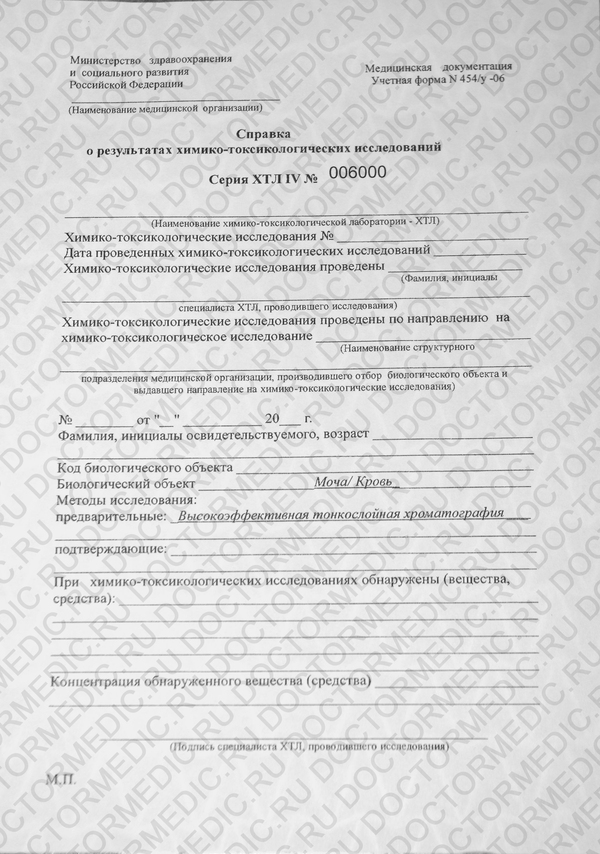 Последние 2 пункта могут проходиться как в поликлинике по месту жительства, так и в медицинском центре( последнее - быстрее), первые 2, с учетом всех поправок - только в психо - неврологическом и наркологическом диспансерах вашего города, плюс одно нововведение: справка о результатах химико - токсикологического исследования( на сколько я понимаю, некоторые водители должны быть с таковым знакомы), выглядеть может по разному, например так: