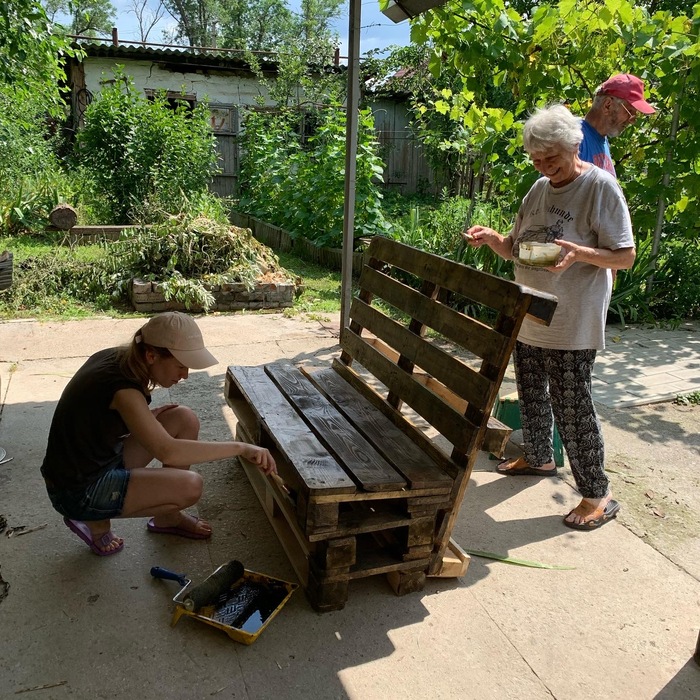 Летний отпуск приятен, но недолог, место отдыха и жизни разделяет 1500км, а руки растут из известного филейного места. Вышеперечисленные факты накладывали большое ограничение на выбор того, что я могу сделать в отведенное время. В итоге, я решил остановиться на DIY(хендмейд) скамейках из паллет для места отдыха около бани и мангала.