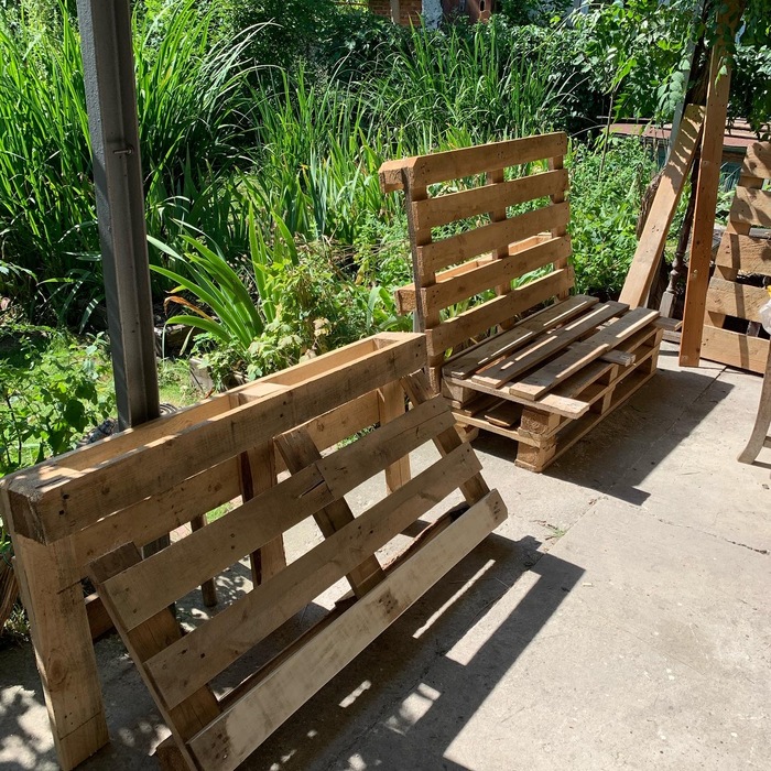Собрал 2 лавки за 3 дня, потратив первый день на поездки за паллетами, закуп материала, черчение, продумывание деталей и тд.
