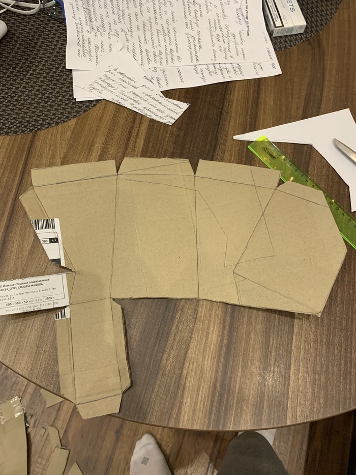 Смотрим промежуточный результат склеенной фигуры. Я использовал обычный скотч.
